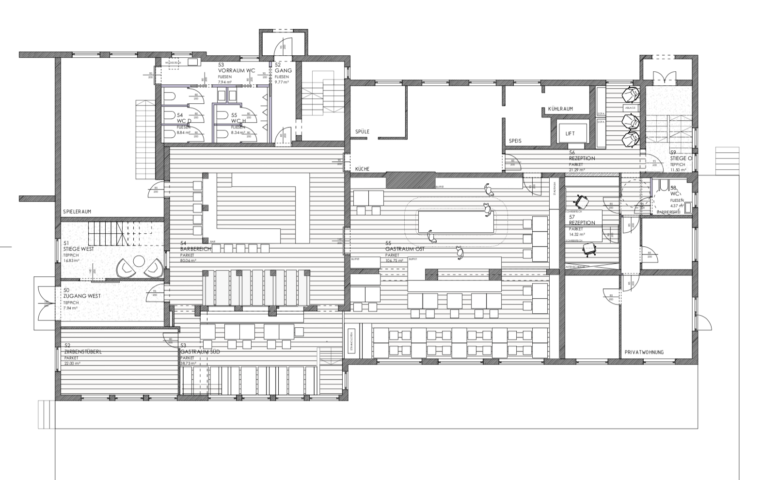 Renovation of the dining area and the hotel rooms of a mountain hotel in the Austrian Alps with Architekt Schlömicher ZT GmbH.